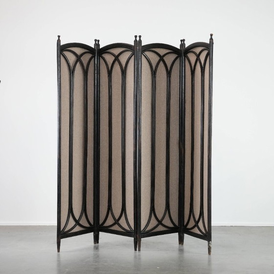This antique bentwood Art Nouveau room divider in the Thonet style will be a true eye-catcher in any interior. It dates from the late 19th century and has been newly upholstered and restored. Besides being a beautiful piece, this room divider is ideal for subtly dividing a room, screening off a section, or as an attractive decorative piece. Years of responsible use have shown normal signs of wear. Naturally, it is still in good condition and ready for immediate use. Can you picture it shining in your interior?