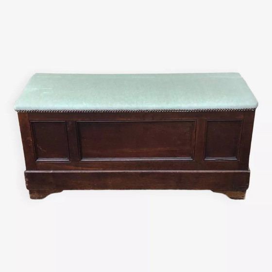 Discover this antique wooden chest, beautifully enhanced with delicate tapestry. This storage piece combines functionality with old-world charm, perfect for adding a touch of elegance to your home.