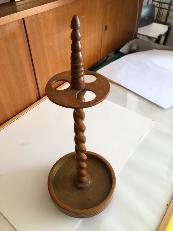 Antique wooden pipe stand - 53 cm high with turned column Beautiful condition