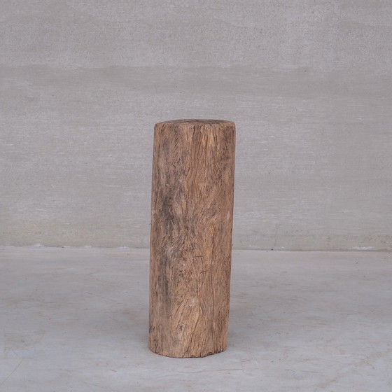 A tree trunk pedestal or display stand.