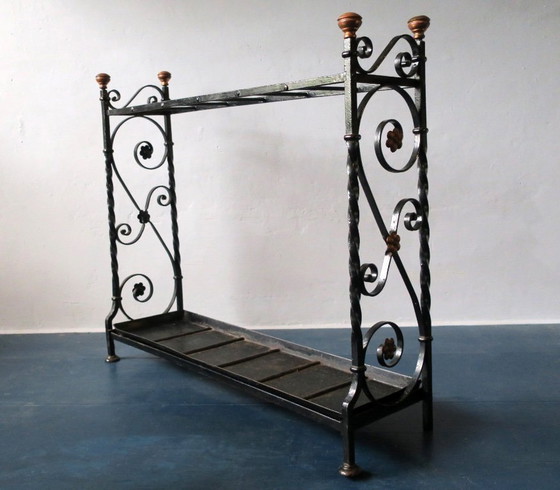 Antique Wrought Iron and Brass Umbrella Stand, 1890s