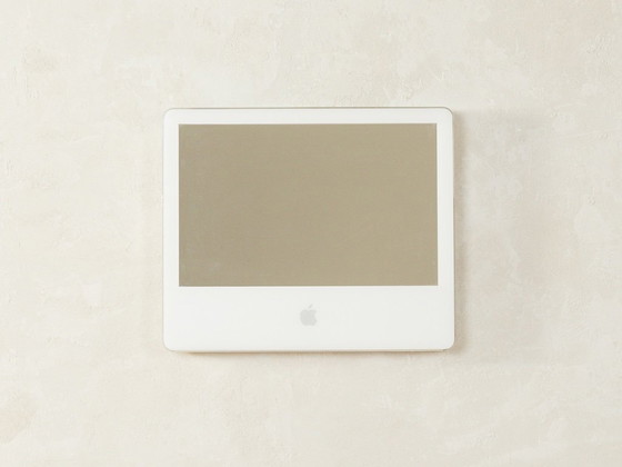 Classic Apple iMac G5 “20 inch” from the 2000s. Lovingly converted by us into an extraordinary wall mirror. The original white plastic casing of the legendary iMac has been carefully preserved and transformed into a decorative design piece. Instead of the screen, a high-quality mirror surface now reflects, elegantly combining technological history, nostalgia, and function. All technical components have been removed. Wall mounting is straightforward and done via two hook screws.