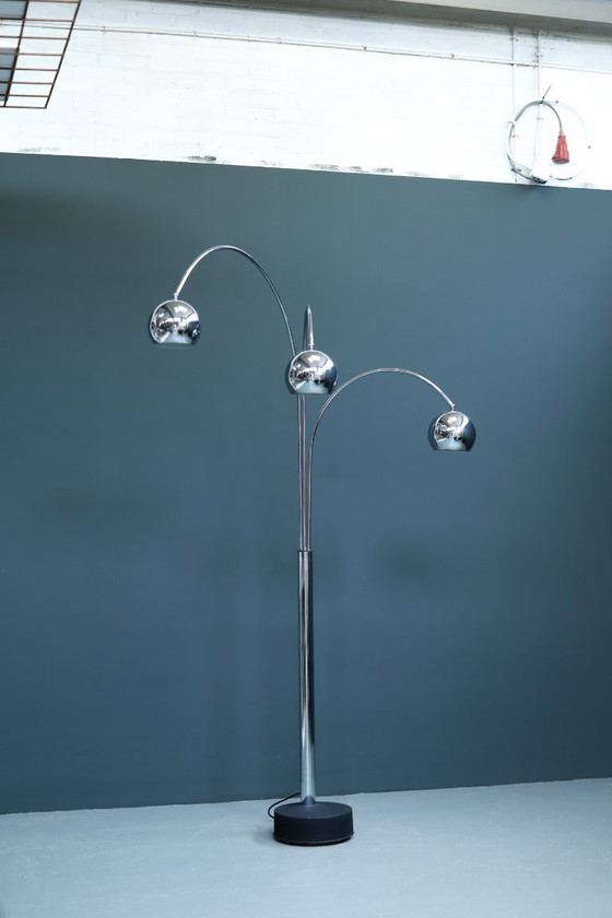 Designer: Goffredo Reggiani | Type: floorlamp | Year: 1970s | Country: Italy | Condition: Good | Materials: chrome, steel | Height: 222 | Width: 200