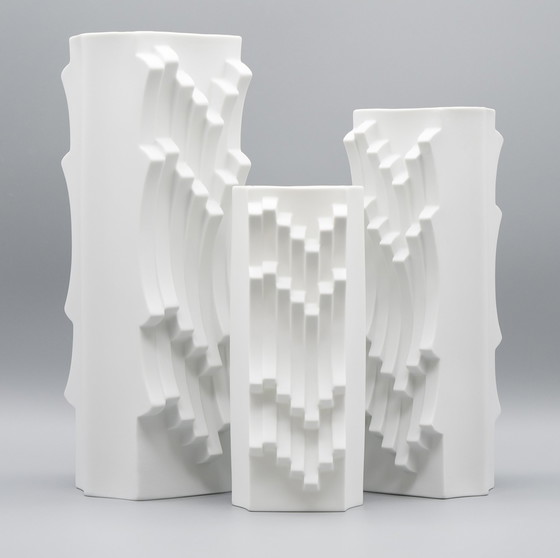 Vintage Lorenz Hutschenreuther "Archais" Vase **TRIO** by Heinrich Fuchs - 1960s/70s Bisque Porcelain Op Art Design