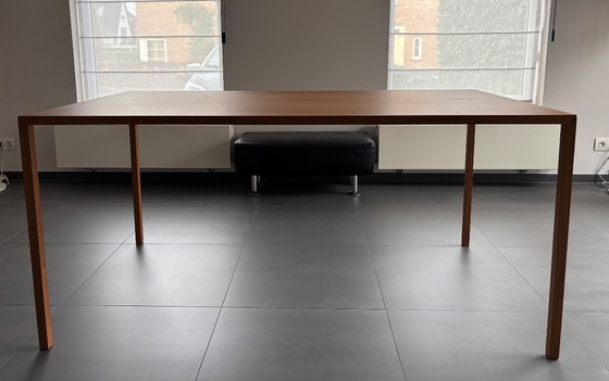 The Arco Slim walnut table is a stunning piece that effortlessly adds a touch of modern elegance to your dining room. With its clean lines and warm wood tones, this table is a perfect blend of style and functionality. Imagine how this table can transform your space, whether you're hosting an intimate dinner or a larger gathering. Crafted from high-quality walnut wood and steel with a walnut veneer, it provides a luxurious look and durability. The sleek and modern design complements a variety of interior styles. With an ideal size of 160x90x75 cm, this table is suitable for any occasion. Don't miss this opportunity to enhance your dining room with this beautiful table. Contact us for more information or to view the table!