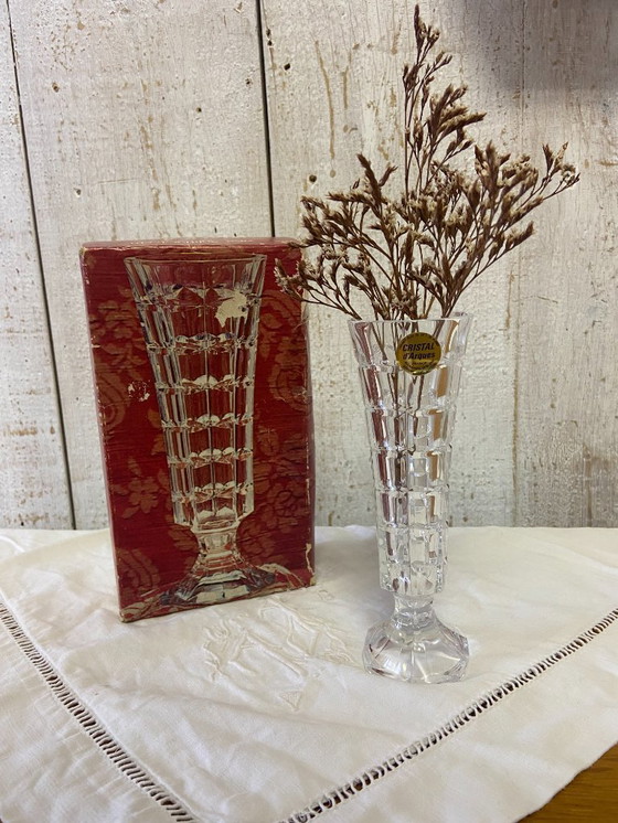 Exquisite crystal vase from Arques with its original box, dating from the 1970s. Still very stylish and incredibly practical, this lovely bud vase is a must-have.