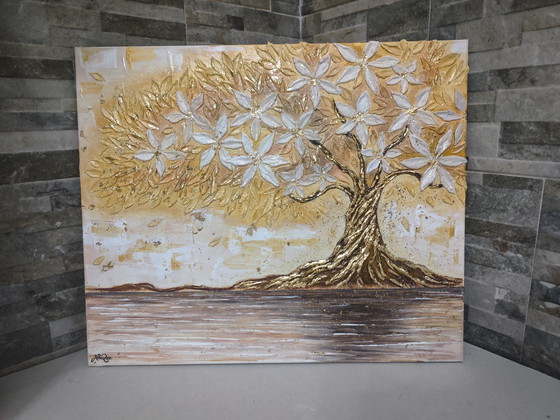 Tecnica e Materiali: Acrilico su tela, rifinito con autentica foglia oro e dettagli dall'alta matericità per una struttura scultorea e tridimensionale. 50x60