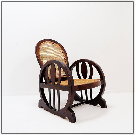 Immerse yourself in the elegance of the 1930s with this solid wood Art Deco armchair.