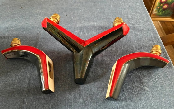 Discover these ceramic wall sconces, true testaments to the timeless elegance of 1950s and 60s Art Deco. Their bold design and vibrant red and black colors bring a touch of sophistication to any interior.