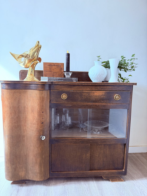 ✨ Very beautiful Art Deco cabinet with glass and rounded sides