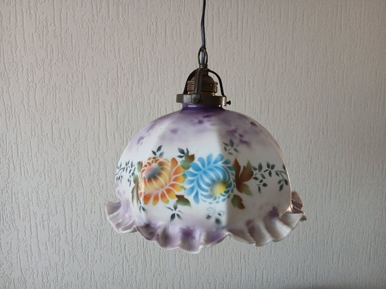 Art Deco pendant lamp in stained opaline glass.