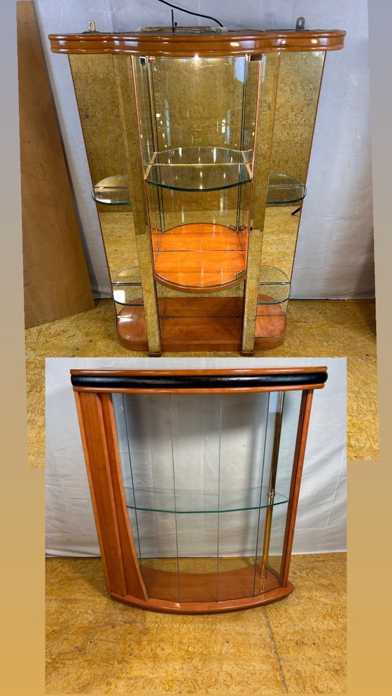 Both pieces feature the geometric lines, symmetry, and timeless glamour associated with the Art Deco era (1920s–1940s), making them highly desirable display furnishings that blend functionality with style.