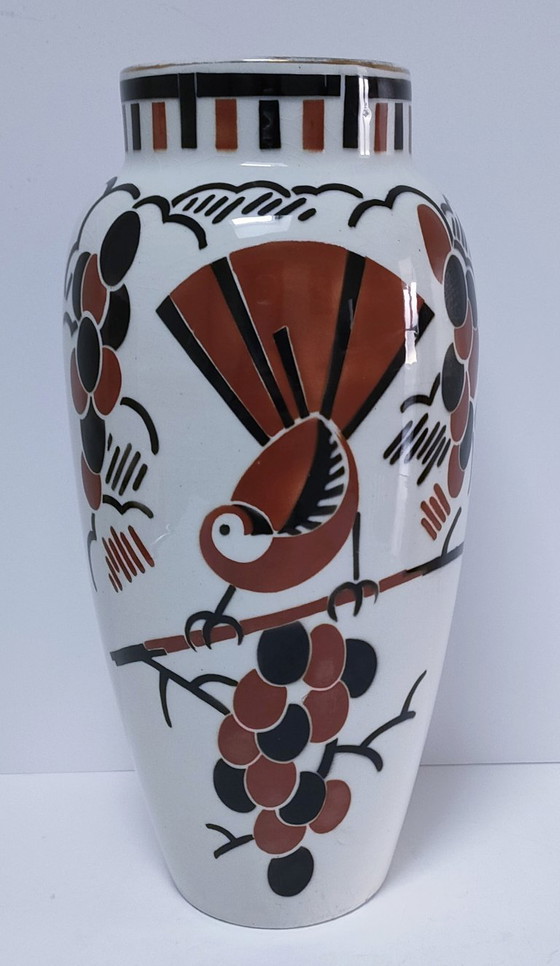 Art Deco vase by Keller & Guérin, Lunéville faience, "Ceylon" pattern.