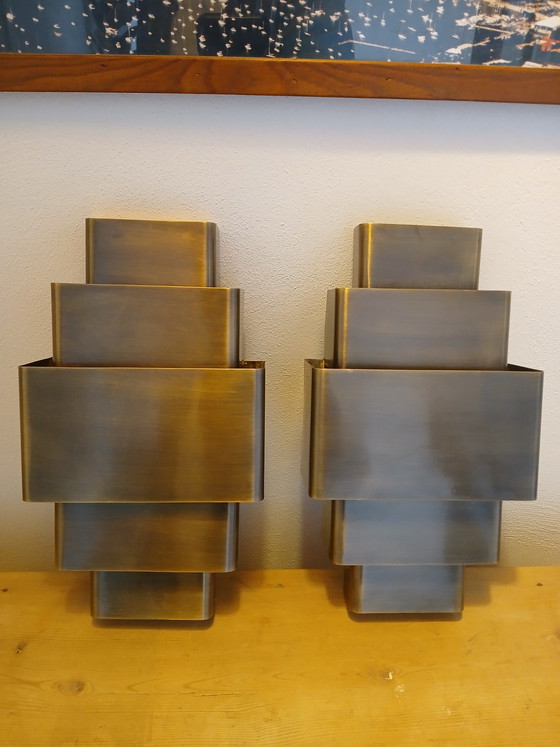 Beautiful wall lights with a clean and elegant design for soft, warm lighting. Easy to mount on the wall, sold without electrical components. Handcrafted. Dimensions: 26 x 14 x 6 cm