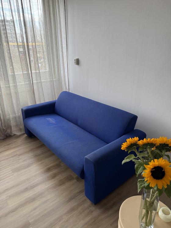 Introducing the Artifort 691 2.5-seater sofa, a piece that embodies modern elegance and comfort. This sofa, with its striking blue textile upholstery, is perfect for those who appreciate contemporary design and wish to add a pop of color to their living space.