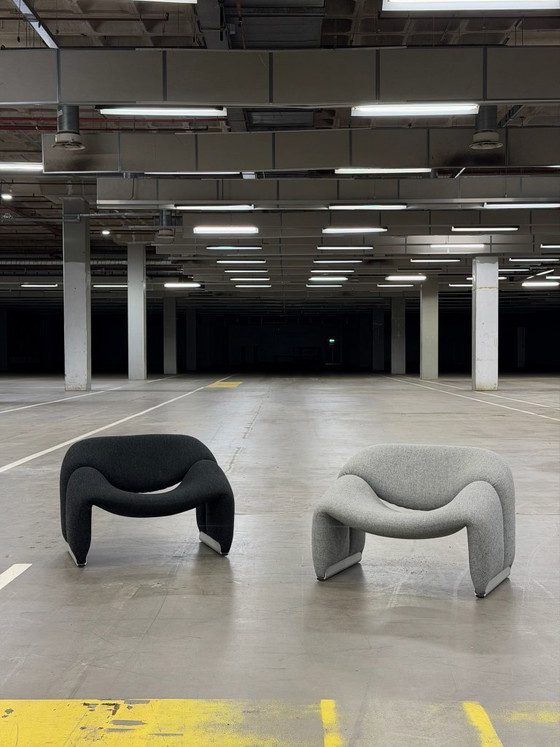 These Artifort Groovy Chairs F598 by designer Pierre Paulin are upholstered in a high-quality fabric with a refined texture, where the soft curves and iconic silhouette immediately catch the eye. The upholstery feels rich and firm and complements the organic forms of the design perfectly, ensuring an inviting and comfortable seating experience, and both chairs are in excellent condition. This set of two makes a stylish addition to any interior and combines design, comfort, and quality in a timeless way.