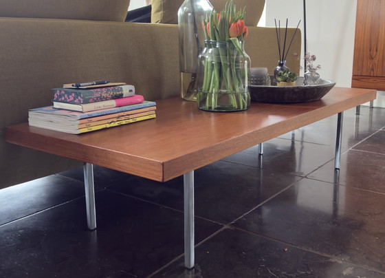 This Artifort coffee table by Koh Liang Ie (1960) is in excellent condition, undamaged. Teak top with metal legs.
