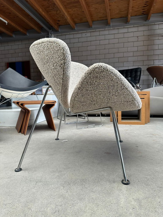 The iconic Artifort Orange Slice chair, designed by Pierre Paulin, is a masterpiece of modern design. Upholstered in luxurious bouclé fabric, this chair offers not only comfort but also makes a visual statement in any room. The elegant, curved lines and minimalist design make it a perfect addition to both modern and classic interiors.