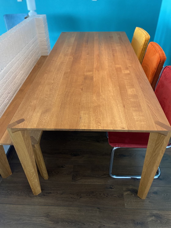 Beautiful handmade oak table, Artisan, Hanny model. Dimensions: 200 x 90 x 76 cm. In perfect condition.