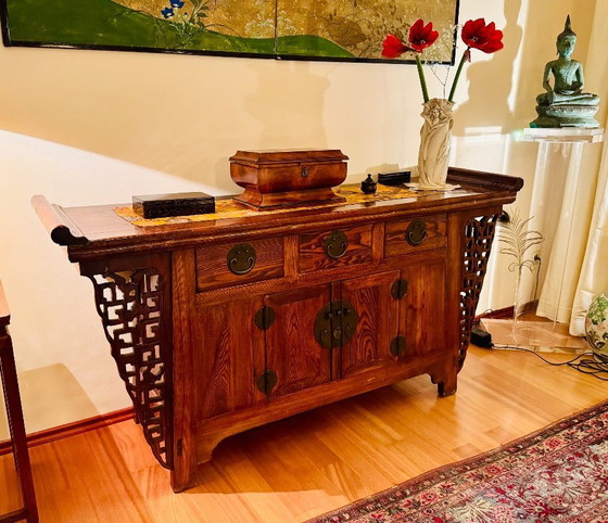 This exquisite Asian sideboard in the Korean style is a testament to timeless elegance and cultural depth. Its warm brown tone and intricate woodwork bring tranquility and refinement to any room.