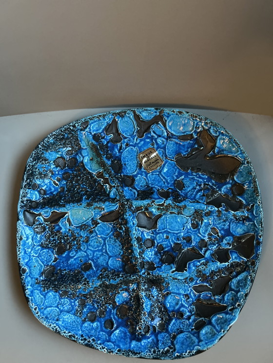 Immerse yourself in the elegance of mid-century design with this exquisite appetizer plate from the Émaux des Glaciers collection by Charles Cart for Le Cyclope Annecy. Crafted in the 1950s, this piece is a testament to the era's artistic innovation and craftsmanship.