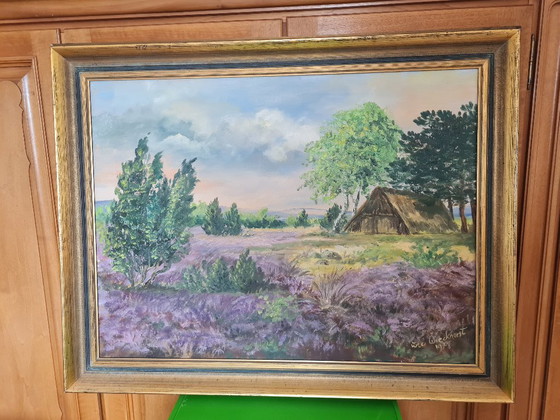 Atmospheric Lüneburg Heath painting by Ute Wieckhorst, 1978, in a beautiful frame