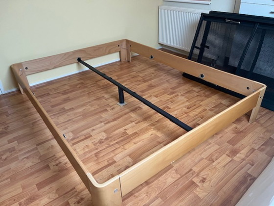 Discover the comfort and style of the Auping Auronde bed frame, a timeless design that seamlessly combines functionality and aesthetics. Crafted from high-quality beech wood, this bed frame not only provides a solid foundation for a good night's sleep but also adds a touch of elegance to any bedroom. The natural wood color creates a warm and inviting look, perfect for both modern and classic interiors. The adjustable spring-loaded base allows you to easily find the ideal sleeping position, contributing to an optimal night's sleep. The headboard of the spring-loaded base is electrically adjustable, while the footboard is manually adjustable. There are also tables on both sides of the bed. This bed frame is an excellent choice for those seeking durability and style in one. Includes two Tempur mattresses if desired.