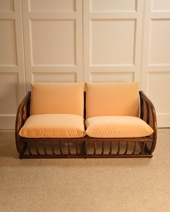 ConditionVery goodColorsBrownMaterialBambooNumber of items1Height70 cmWidth140 cmDepth85 cmSeat height46 cmSigns of usageScratches