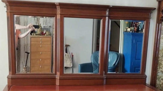 Bar mirror: Width: 170 cm Height: 98 cm Depth: 10 cm. Stands in smoke-free and animal-free home. Bar mirror weighs 20 kg. They are mirrors with facets around each mirror. You also see the Chinese sideboard, which is unfortunately already sold! Pick up no problem, or arrange transportation through Whoppa.