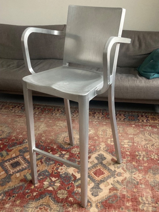 Discover the timeless elegance of the Emeco Bar Stool, designed by the renowned Philippe Starck. This bar stool is a masterpiece of modern design, crafted from durable aluminum that is both lightweight and robust. Perfect for any modern kitchen or bar, this stool offers a refined look that blends seamlessly into any interior.
