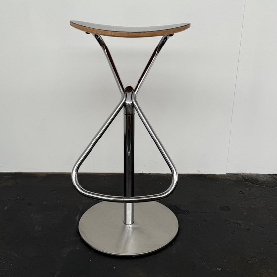 Bar stool KFF rodeo lusso. Frame and base chromed. Seat plywood black. No longer in collection rare.
