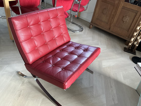 Add a pop of color and a touch of iconic design to your space with this vibrant red Barcelona chair replica. Perfect for those who appreciate modern aesthetics, this chair is a stylish addition to any room.