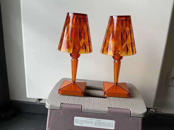 Experience the refined elegance of the Kartell battery-powered lamp in a warm amber color. This modern table lamp combines style and functionality, perfect for any space where ambiance and design meet. Made of high-quality plastic, this lamp offers durability and a luxurious appearance. The amber hue creates a warm, inviting glow that brings any room to life. Thanks to its cordless design, this lamp is ideal for flexible use, without relying on electrical outlets. Add a touch of modern sophistication to your interior with this beautiful Kartell lamp.