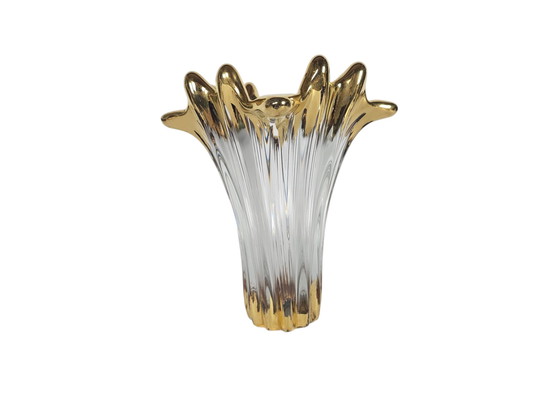 Crystal vase with gilded tops from the "Cristallerie" of Bayel. Bayel is a small town in the French Champagne region where the inhabitants largely make their living in glassblowing.