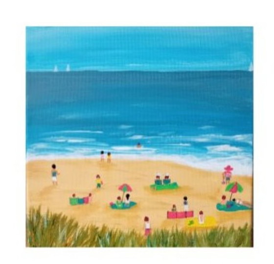 Painting "Beach Fun" size 25x25 acrylic paint on canvas