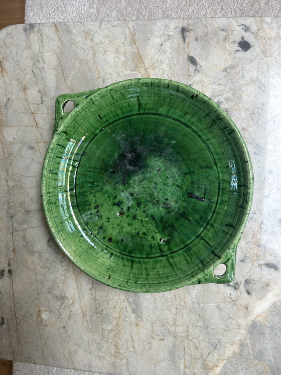 The bowl has a robust, rustic appearance with Tamegroute-typical imperfections in the glaze, giving each piece its own character. Perfect as an eye-catcher on the dining table, as a fruit bowl, or as a decorative object in a modern or bohemian interior.