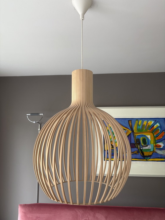 This beautiful Secto Octo designer lamp is made of birch and has an elegant, Scandinavian look. The lamp is designed to create a warm and inviting atmosphere in any room. With its unique shape and high-quality finish, it is a real eye-catcher. Perfect for above the dining table or in the living room.