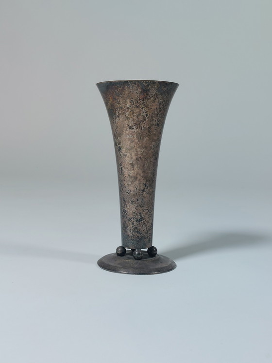 This exquisite silver-plated table vase from WMF embodies the elegant charm of Art Deco. Its patinated surface lends it a unique, timeless appeal.