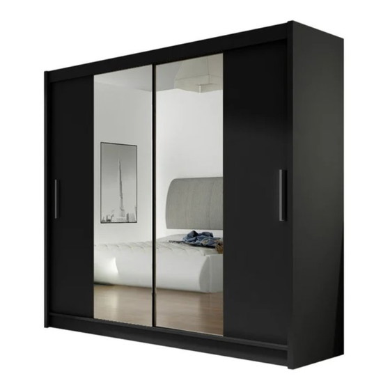 This modern two-door sliding wardrobe combines functionality, elegance, and everyday comfort. Designed with a smooth sliding door system, it allows easy access without taking up additional space, making it perfect for both large and compact interiors. The vertical mirrors on the front not only add a stylish look but also visually enlarge and brighten the room.