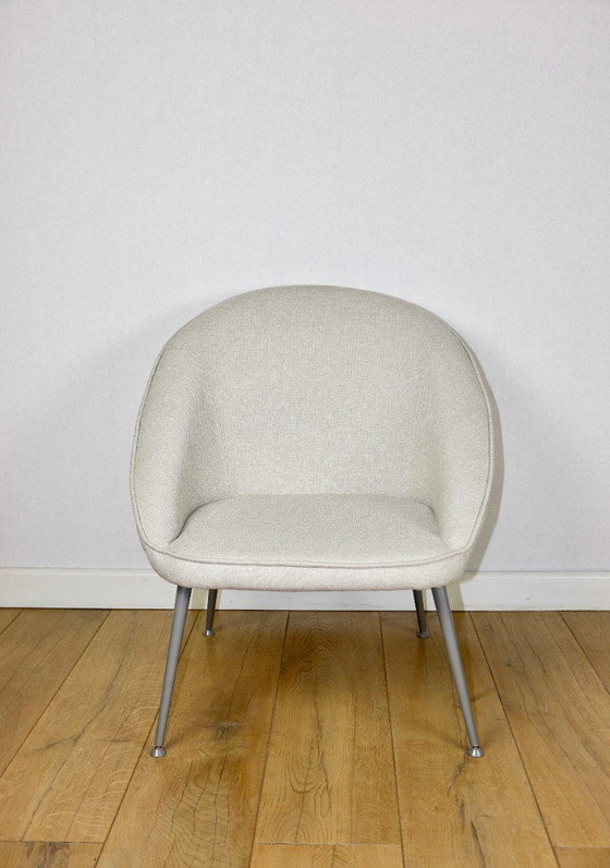 Beige ivory shell armchair from the 70s on grey metal legs - beautiful.
