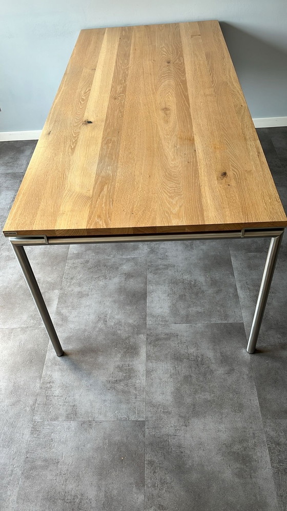 Bert Plantagie dining table Hook in rusted oak oil Bianco 200*90 with stainless steel base. Purchased in December 2017. Original invoice present. New price: €1,691.