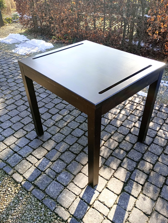 This bistro table is made of solid beech wood and has a modern look. The sturdy tabletop offers ample space for a variety of uses. It's ideal for use in a bistro, café, or as an extra table at home. Its sleek design complements a variety of interior styles.