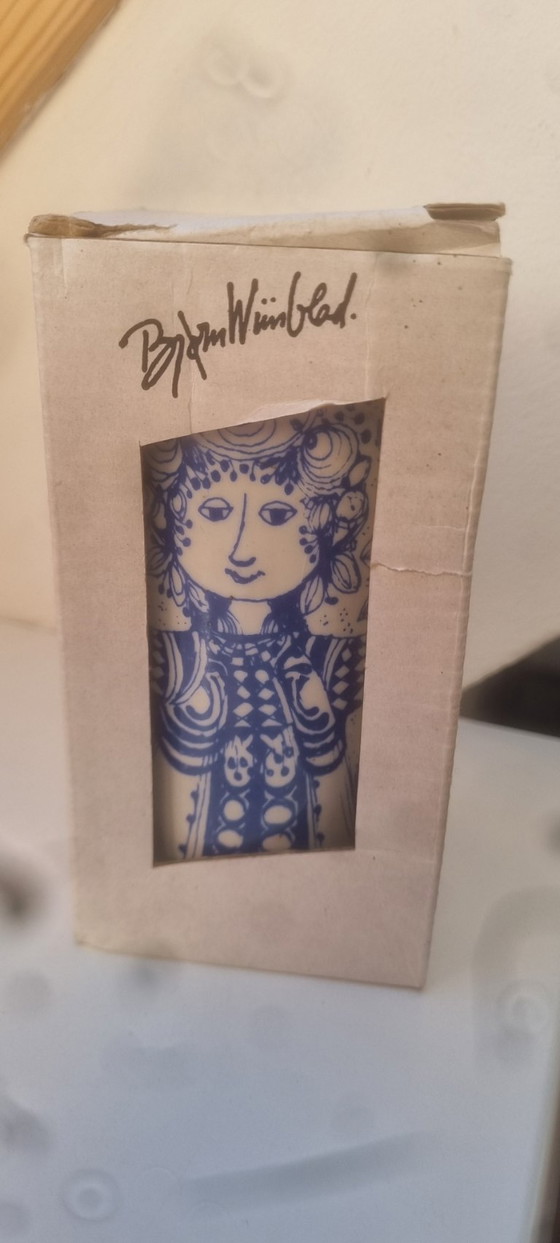 - Adorned with intricate blue floral patterns, characteristic of Wiinblad's unique style.