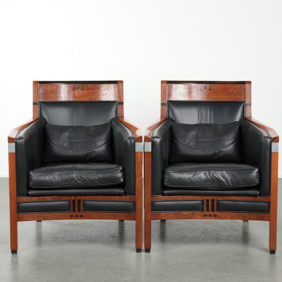 ConditionVery goodColorsBlackMaterialWood, LeatherNumber of items2BrandSchuitemaHeight81 cmWidth68 cmDepth73 cmSeat height46 cm
