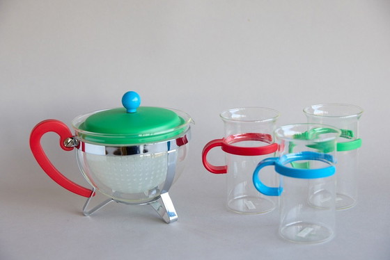 Bodum vintage Chambord teapot + 3 cups, not used much, filter in very good condition
