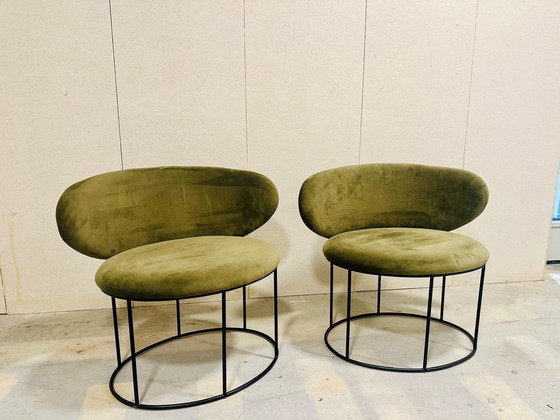 2 beautiful armchairs / benches from Bolia. Seat green velour. Base: black powder coated steel. As good as new. Bon present. Price a piece.
