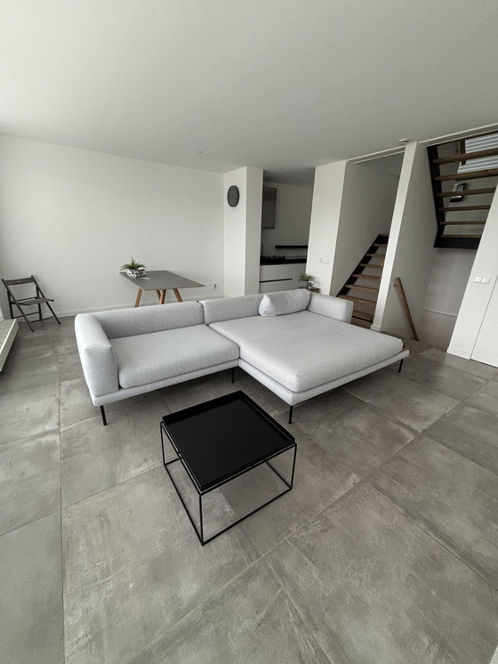 This Bolia Jerome corner sofa is in excellent condition, offering a sleek and modern design that fits perfectly in any contemporary living space. Its soft grey textile upholstery provides a neutral and inviting look, while the sturdy metal legs add a touch of elegance and stability. The wooden accents enhance its sophisticated appeal, making it a versatile piece for both lounging and entertaining. Ideal for those who appreciate quality craftsmanship and minimalist style.