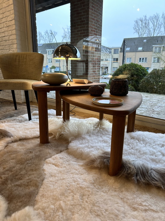This set is a beautiful example of Scandinavian design from the 1970s, where simplicity, functionality, and natural materials seamlessly blend. The tables are crafted from solid Norwegian Red Wood, finished in a warm oil that further enhances their rich grain.