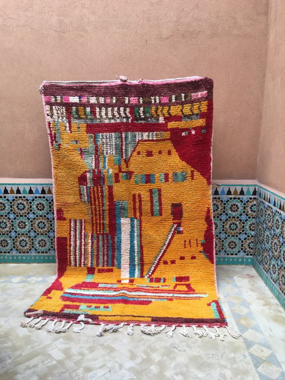 Originating from Boujaad, these rugs are likened to paintings and admired as works of art.