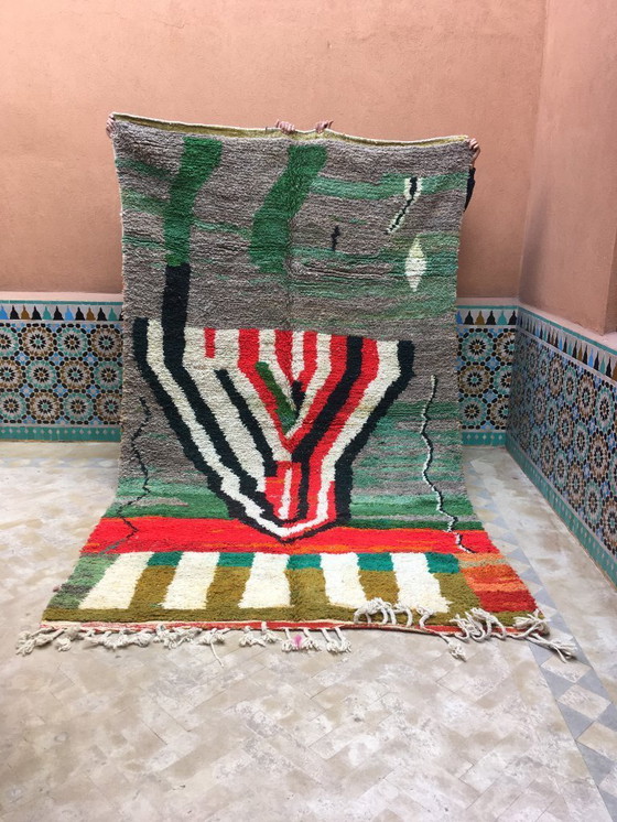 Originating from Boujaad, these rugs are likened to paintings and admired as works of art.